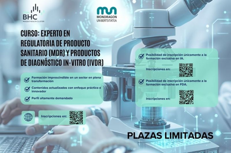 Basque Health Cluster, en colaboración con Mondragon Unibertsitatea, lanza una nueva edición del Curso de Experto en Regulatoria de Producto Sanitario (MDR) y productos de diagnóstico in vitro (IVDR).